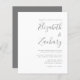 Este simples convite de casamento moderno mostra texto de cinza em um fundo branco. Adicione os nomes da noiva e do noivo na caligrafia de escrita manual do na moda e os detalhes na fonte sans serif. O reverso é uma sombra correspondente de cinzas sólidas. NOTA: os envelopes não são incluídos automaticamente nestes convites de orçamento, portanto lembre-se de escolher a opção "envelopes brancos"!