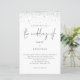 Convite De Casamento De Scripts De Scripts De Silver Orçamentário. Um tamanho maior de 5,5" x 8,5" a um preço orçamentário, em um STOCK CARD SEMI GLOSS de 110 lb, excelente de convites, aproximadamente na mesma espessura de um cartão postal, ou um estoque LINEN elegante de 110 lb - para um luxo, ligeiramente mais fino, com um valor de excelente. OBSERVE QUE OS ENVELOPES OPCIONAIS SÃO UM POUCO MAIORES EM TAMANHO A 6,75" x 9" aprox. Este alternativo de tamanho de orçamento também está disponível em outras opções de papel. O papel FELT de 100 lbs é colorido por buff, NÃO branco, então adiciona um toque rústico. O estoque de papel MATTE de 80 lbs é branco brilhante, para impressão nítida, excelente para seus menus e programas, enquanto o papel SATIN de 80 lbs é fino e leve, ideal para gabinetes Uma tipografia de na moda em preto para o cabeçalho principal do 'Casamento de complementar o resto do texto que você pode personalizar facilmente. Uma borda cintilante de falso prateado atravessa o topo de cada lado.