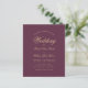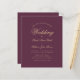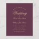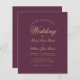 Um simples convite para casamento de orçamento minimalista. Tem apenas ouro texto amarelo sobre a cor do vinho (perto de burgundy). A palavra Casamento e os nomes são escritos em um roteiro caligráfico elegante. "rosa de canela" é uma moderna cor vermelha-rosada-rosada-rosada, muito parecida com burgundy.