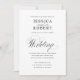 Clássico convite de casamento preto e branco subdeclarado com um toque moderno com a elegante escrita da palavra "Casamento".