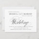 Clássico convite de casamento preto e branco subdeclarado com um toque moderno com a elegante escrita da palavra "Casamento.