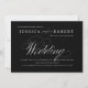 Clássico branco subdeclarado em convite de casamento preto com um toque moderno que apresenta o elegante roteiro da palavra "Casamento. Morre de versão cortada com borda preta.