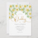 Bonito margaridas brancas sobre fundo branco. Tão doce e delicado. O verso deste convite apresenta uma aquarela amarela pálida. Que adorável. Um convite perfeito para o seu dia especial.