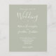O Convite de Casamento apresenta um design tipográfico elegante, moderno e limpo, com esquema de cores verdes sábias. Este convite está pronto para você personalizar com os detalhes do seu dia especial. Por favor, navegue no pacote de casamento mínimo Elegante verde Sage para obter itens de papelaria correspondentes.