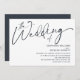 Simples roteiro moderno "o casamento de" com cinzas azuis e flor silvestre sólidas e escuras em um pote em branco no verso do convite. Envie-me uma mensagem se precisar de assistência ou se tiver algum pedido especial.