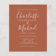 Apresentando nomes de estilo de assinatura, este simples convite de casamento de orçamento de terracota simples pode ser personalizado com suas informações em tipografia branca-chique. Projetado por Thisnotme©