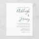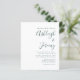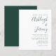 Este simples convite de casamento moderno mostra o texto verde esmeraldo em um fundo branco. Adicione os nomes da noiva e do noivo na caligrafia de escrita manual do na moda e os detalhes na fonte sans serif. O reverso é uma sombra de verde esmeralda sólido.