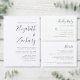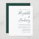 Este simples convite de casamento moderno mostra o texto verde esmeraldo em um fundo branco. Adicione os nomes da noiva e do noivo na caligrafia de escrita manual do na moda e os detalhes na fonte sans serif. O reverso é uma sombra de verde esmeralda sólido.