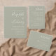 Este simples convite de casamento moderno apresenta texto verde sábio sobre fundo branco. Adicione os nomes da noiva e do noivo na caligrafia de escrita manual do na moda e os detalhes na fonte sans serif. O reverso é uma sombra correspondente de verde de sábio sólido.