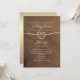 Simples, elegante e minimalista convite para casamento de madeiras rústicas com falso coração de corda de ouro e roteiro de caligrafia moderno.