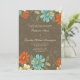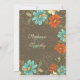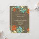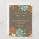 Este convite de casamento chic 5 x 7 tem um na moda vintage azul-do-mar, laranja queimado, creme macio e design floral verde-oliva no topo e no fundo. Há algumas designs de espiral de bolinhas junto com uma borboleta na parte inferior direita. O fundo tem uma design de folhagem desbotada com uma cor escura esticada. Você pode personalizar facilmente as informações da cerimônia de casamento no meio.