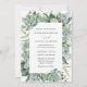 Belo convite para o casamento suculento e eucalipto. Personalize com seu texto. Clique em "Personalizar mais" para editar o estilo, o tamanho e a cor da fonte, se desejar.