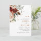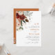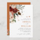 Um design de tema floral de cor d'água do casamento de terracotta com uma letra de caligrafia elegante. O texto preto e outros recursos deste modelo de convite de casamento podem ser personalizados.