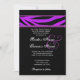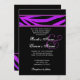 Este design com seu impressão de tigre roxo e preto saindo por trás de um fundo preto mistura elementos contemporâneos e clássicos, e faz um convite de casamento elegante. A placa RSVP correspondente e mais itens de marca de zebra são mostrados abaixo.
