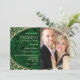 Luxo, vintage, belos tons de joia, convite para casamento verde esmeralda com vintage e foto de noiva e noiva.