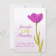 Tulipa roxa de solteiro linda numa cinza, papel de efeito rústico roxo, convite de casamento floral. Edite este convite com suas próprias palavras e detalhes do casamento. Simples convite romântico para arte estilo country. Design e pintura aquosa de Sarah Trett.