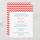 Esses convites para casamento modernos e na moda têm uma banda de chevron no topo com texto de turquesa/teta e elementos de coral contrastantes.