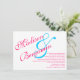 Escolha o tipo de papel COLUNED para um convite mais elegante. Fuchsia Rosa Simples e Limpa, Fria Rosa Quente, e Turquesa Azul Convites de Casamento com um aspecto moderno, mas simples, clássico. Não há designs distraídos no convite, apenas uma simples carta. O verso é azul de turquesa verde sólida. Inclui um grande e especial que se junta a um grande escrevendo de script dos nomes da noiva e do noivo em uma diagonal. Basta adicionar seu próprio texto de convite para casamento ao modelo.