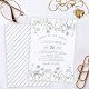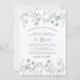 A flor da água azul empoeirada cai no convite de casamento floral. Convite para casamento de flores pequenas e elegantes azuis.