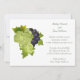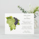 Convite de casamento mostrado em um formato clássico, mas fresco, em cores de verde-oliva e branco, com texto verde-oliva escrito com impressão de arte de uvas. Perfeito para o casal que planeja se casar na área do vale de napa ou qualquer lugar de adega. Personalize este convite e altere o texto apropriado para o seu com este modelo.