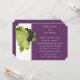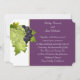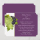 Convite de casamento apresentado num formato clássico, mas fresco, em cores de verde-oliva lt e roxo-uva com texto branco num roteiro com impressão de arte de uvas. Perfeito para o casal que planeja se casar na área do vale de napa ou qualquer lugar de adega. Personalize este convite e altere o texto apropriado para o seu.