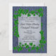 Um convite encantador de denim com um vinho sobrecarregado. Coloque os primeiros nomes do casal de um lado com toda a informação do casamento e saudação no reverso. Por favor, verifique triplicamente todo o seu texto.