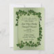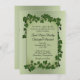 Um belo convite com fronteiras de folhas verdes. Coloque os primeiros nomes do casal de um lado com todas as informações do casamento e saudação da mãe e do pai da noiva. Por favor, verifique triplicamente todo o seu texto.