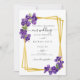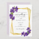 O Convite para Casamento por Aquarela com Violetas Roxas Profundas é uma representação espantosa de beleza eterno e elegância refinada. A combinação de violetas roxas profundas e um quadro luxuoso de ouro cria um senso de opulência e sofisticação, estabelecendo o palco para uma celebração de casamento que é tão encantadora quanto inesquecível. Este convite personalizável deixa certamente uma impressão duradoura sobre os seus convidados e serve como uma lembrança carinhosa do seu dia especial.