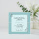Linda linha azul parece um convite de casamento, com uma área de texto azul de ovo de um ladrão, no meio. Gráficos elegantes de libélulas azuis decoram o canto superior esquerdo e o canto inferior direito da área de texto. Personalize o texto para atender às suas necessidades. Produtos correspondentes disponíveis.