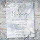 Um elegante convite de casamento, com figuras de tipografia de escrita de caligrafia e flocos de neve delicados, que se cruzam com seus nomes personalizados, data especial e detalhes do evento de celebração de casamento em um fundo de gelo de inverno. Projetado por Thisnotme©