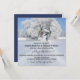 Um convite romântico de casamento com uma pintura de um casal com um guarda-chuva numa paisagem coberta de neve. Se você não gostar do casal, poderá torná-lo invisível nas opções avançadas de personalização, verificando o ícone de olho na imagem superior na frente. Este convite também tem uma placa RSVP correspondente. Bonita para um casamento no inverno.