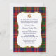 O convite tradicional para o casamento da xadrez de tartan escocesa, feito com o adorável e colorido bronzeado da família MacPherson. Uma área de texto decorativa borda dourada tem gráficos de um coração vermelho entrelaçados em um nó Celta. O texto está em azul escuro e é totalmente personalizável para atender às suas necessidades de casamento. Produtos de casamento correspondentes disponíveis.