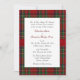 Este padrão colorido de xadrez vermelho, verde, azul, amarelo e branco da Royal Stewart tartan, define o cenário para este convite de casamento inspirado na Escócia. Os gráficos de uma fita vermelha são executados no meio, com uma sobreposição de texto branca, na parte superior. O texto preto e vermelho está pronto para personalizar o seu dia especial. Produtos correspondentes disponíveis.