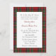 Este padrão colorido de xadrez vermelho, verde, azul, amarelo e branco da Royal Stewart tartan, define o cenário para este convite de casamento inspirado na Escócia. Os gráficos de uma camada de texto branca têm texto preto e vermelho pronto para personalizar o seu dia especial. Produtos correspondentes disponíveis.