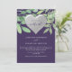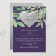 Um convite para casamento elegante e roxo com cor de água rústica verde e coração prateado. Escolha perfeita para a celebração virtual do casamento moderno e romântico.