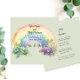Um arco-íris alegre que termina em flores de cada lado representa o convite para o casamento de casais lésbicas. Escolhi o papel de Pearl Shimmer para fazer este convite sair.