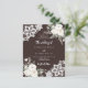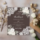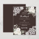Para um casamento elegante e romântico. Um fundo castanho, de cor castanha, decorado com flores brancas, rosas e rendas brancas. Personalize e adicione seus nomes e detalhes. 1 folha = 1 convite impresso de borda a borda.