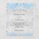 Fundo metálico de aspecto fino prateado decorado com corações azuis. Personalize e adicione seus nomes e detalhes do casamento. Letras pretas coloridas. Voltar: adicione o URL do seu site de casamento ao código QR para obter mais informações e registro RSVP. Este convite também está disponível em nossa loja sem o código QR no verso