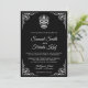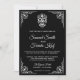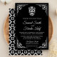Encontrem seus convidados com este convite de casamento do tema Calavera, com uma elegante borda branca de ornamentado e um belo crânio contra fundo negro. Basta adicionar os detalhes do seu evento neste modelo fácil de usar para torná-lo um convite de tipo único. Sacudir a placa para revelar um padrão branco e preto elegante na parte traseira da placa. Este convite é totalmente personalizável. Todos os textos são editáveis e a cor de fundo pode ser facilmente alterada para quais melhores ajustados você pode fazer.