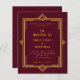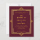 Para um casamento elegante, estilo Gatsby. Um fundo arrojado decorado com uma estrutura de estilo deco de arte ouro. Personalize e adicione seus nomes e detalhes. 1 folha = 1 convite impresso de borda a borda.