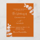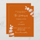 Fundo laranja queimado, decorado com caules de eucalipto, galhos. Personalize e adicione seus nomes e detalhes. Fundo: cor de laranja empoeirada.