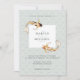 Convite de casamento elegante com um par de peixes koi. O fundo azul é um padrão inspirado no japonês.