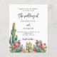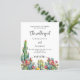 Um fundo branco decorado com cactos florais coloridos. Personalize e seus nomes e detalhes. 1 folha = 1 convite impresso de borda a borda.