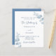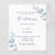 Um fundo branco, decorado com caules de eucalipto azuis empoeirados, galhos. Personalize e seus nomes e detalhes. Fundo: fundo azul empoeirado. Adicione o URL do seu site de casamento para gerar seu próprio código QR e um texto.