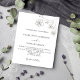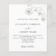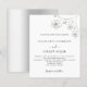 Um convite de casamento moderno, elegante e minimalista. Frente: fundo branco decorado com florais prateados. Personalize e adicione seus nomes e detalhes do casamento. Letras pretas coloridas. Fundo: falso prata olhando fundo.