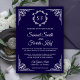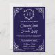 Amaze seus convidados com este convite de casamento estilo vintage com uma elegante borda branca de ornamentado e um belo monograma contra um fundo azul escuro. Basta adicionar os detalhes do seu evento neste modelo fácil de usar para torná-lo um convite de tipo único. Este cartão é totalmente personalizável. Todos os textos são editáveis e a cor de fundo pode ser facilmente alterada para quais melhores ajustados você pode fazer.