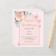 Um fundo cor-de-rosa pincelado com um rosa dourado e um arco colorido de pêssego. Decorados com ouro rosa e borboletas cor-de-rosa esbranquiçada, rosa, eucalipto verde e borboletas. Personalize e adicione seus nomes e detalhes. 1 folha = 1 convite impresso de borda a borda.