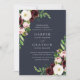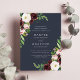 Nosso convite para o casamento do Blush Romance à meia-noite rodeia os detalhes do seu dia de casamento com aglomerados de flores de aquarela em marfim, rosa-pincelado e marsala-penteado com folhagem botânica verde-esbusta em um rico fundo azul-marinho. Este design elegante acomoda nomes mais longos ou nomes do meio. Visite nossa coleção Blush Romance para vários estilos alternativos e peças correspondentes.