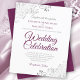 Estes convites para casamento baratos e amigáveis são a escolha perfeita para a aula, estilo e beleza num orçamento. O design apresenta o texto roxo ou magenta e cinza em um fundo branco clássico com as cinzas de prata ornamentado e espirais nos cantos. A tipografia inclui a inscrição em rico para um estilo simples e elegante. Uma maneira maravilhosa de convidar seus amigos e família para compartilhar sua alegria em seu dia especial sem quebrar o banco.