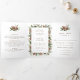 Convite de casamento para três dias de inverno. Este convite para o casamento de férias de inverno apresenta cores d'água pintadas manualmente verde e pinecones organizados como um belo quadro. O texto é marrom e o fundo é branco.
